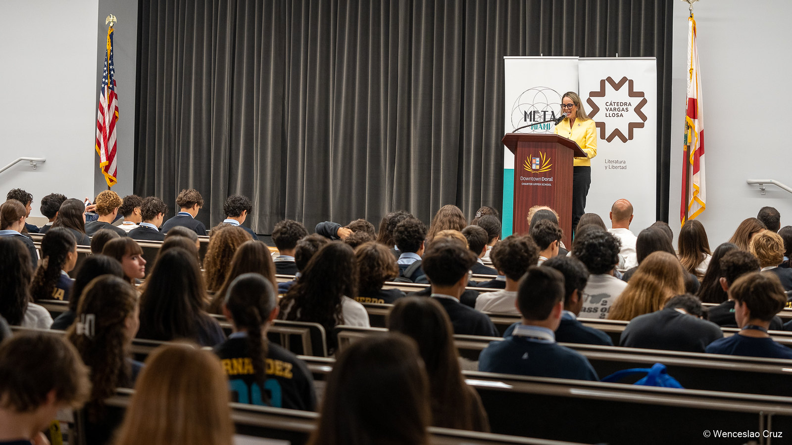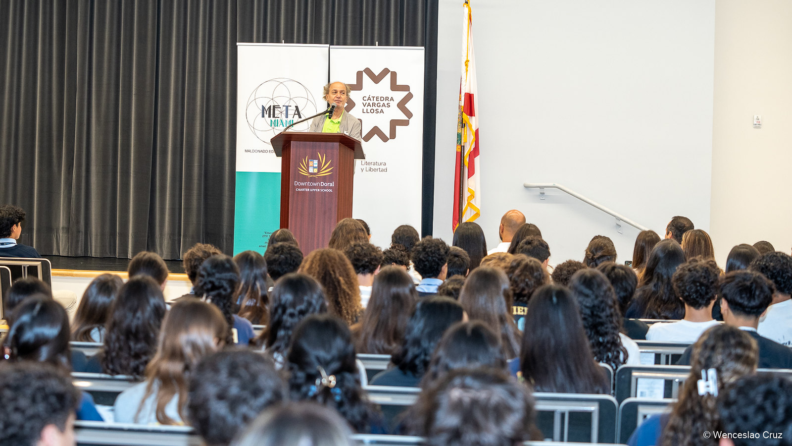 El Maestro Eduardo Marturet, Director de la Sinfónica de Miami, visitó las escuelas participantes en My Miami Migration Story para dar inicio a los preparativos de la edición 2025. Este concurso, auspiciado por la Cátedra Vargas Llosa, celebra su segunda edición en colaboración con Doral Upper Charter School y la International Studies Preparatory Academy.