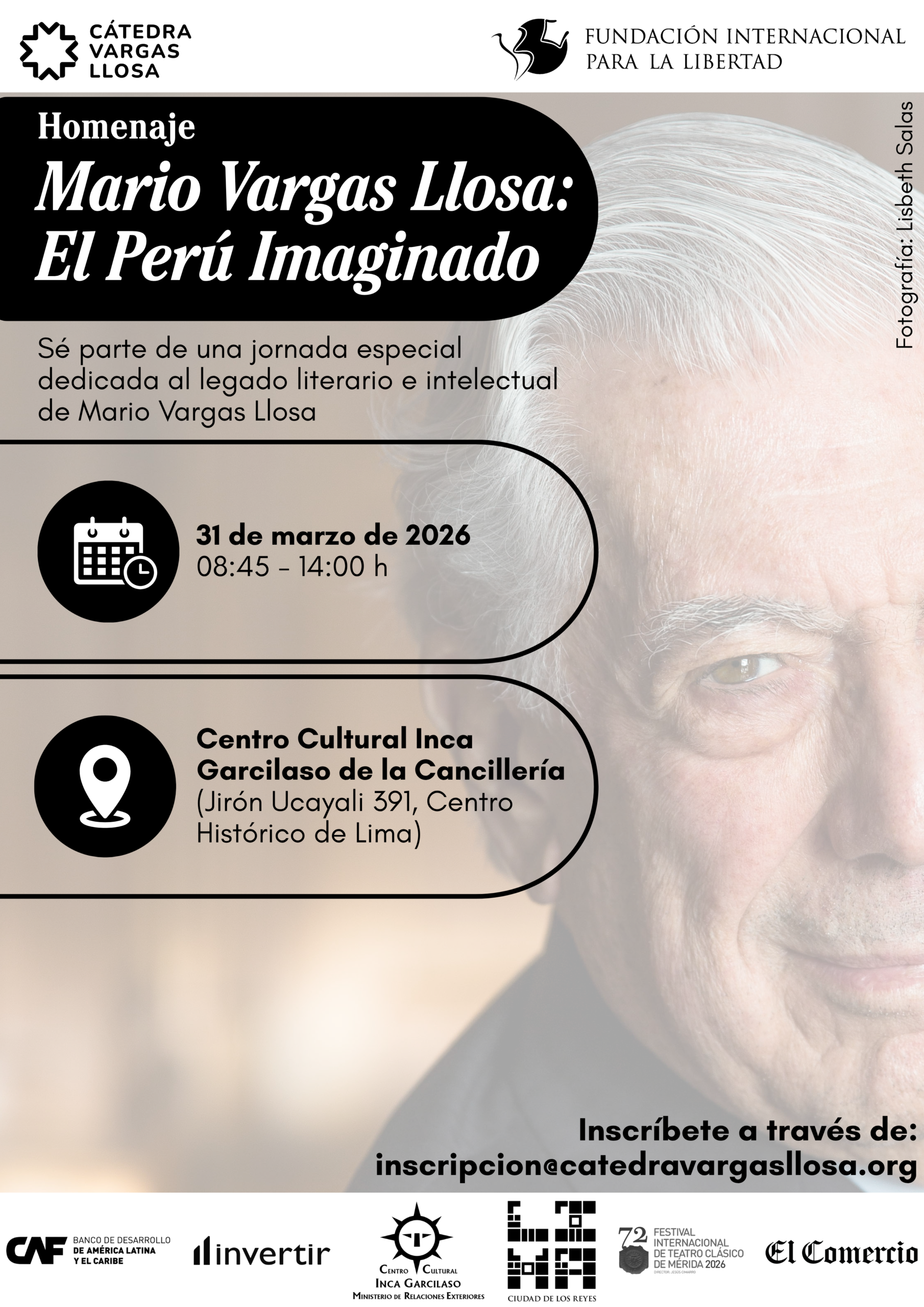 Homenaje «Mario Vargas Llosa: El Perú Imaginado» – 31 de marzo de 2026 – RSVP: inscripcion@catedravargasllosa.org