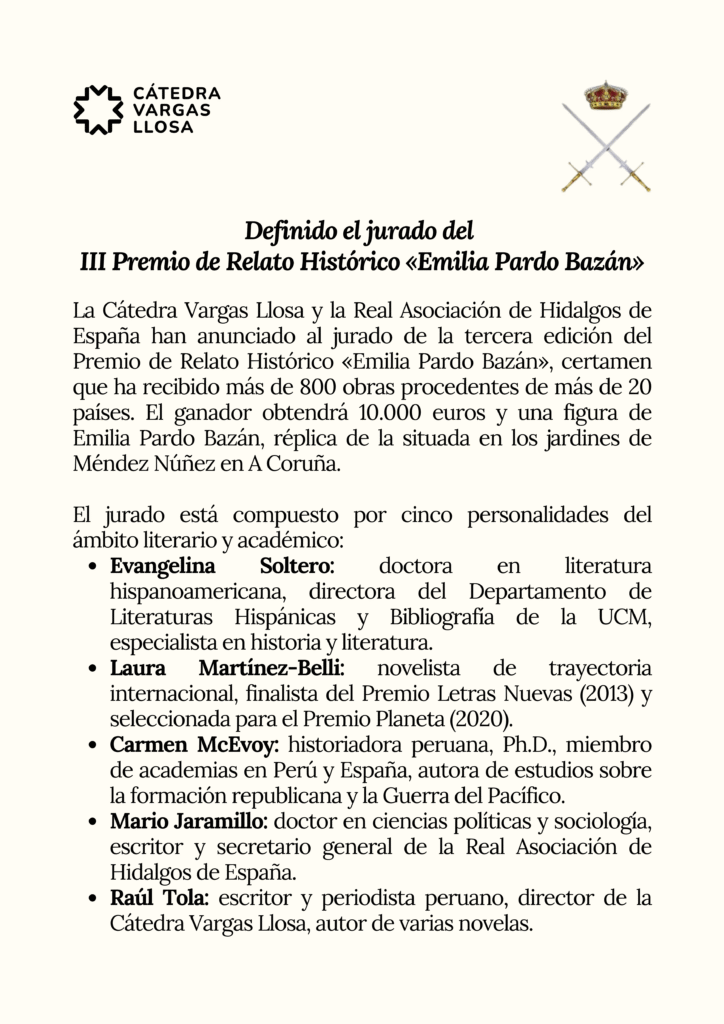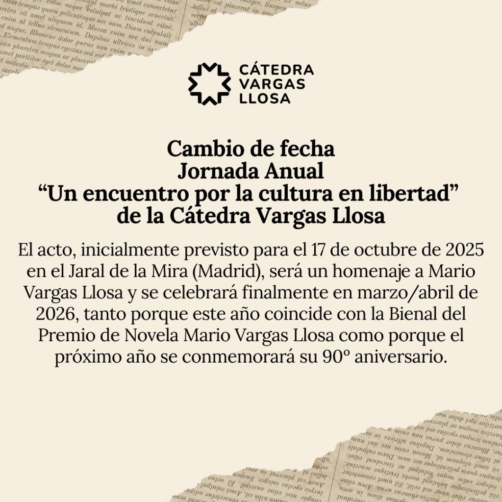Miércoles 16 de julio de 2025: Conversatorio de la Cátedra Vargas Llosa con el crítico Carlos Burgos Jara (Universidad de San Diego / UCM). Evento virtual a través del canal de YouTube de la Cátedra Vargas Llosa (haga clic aquí).